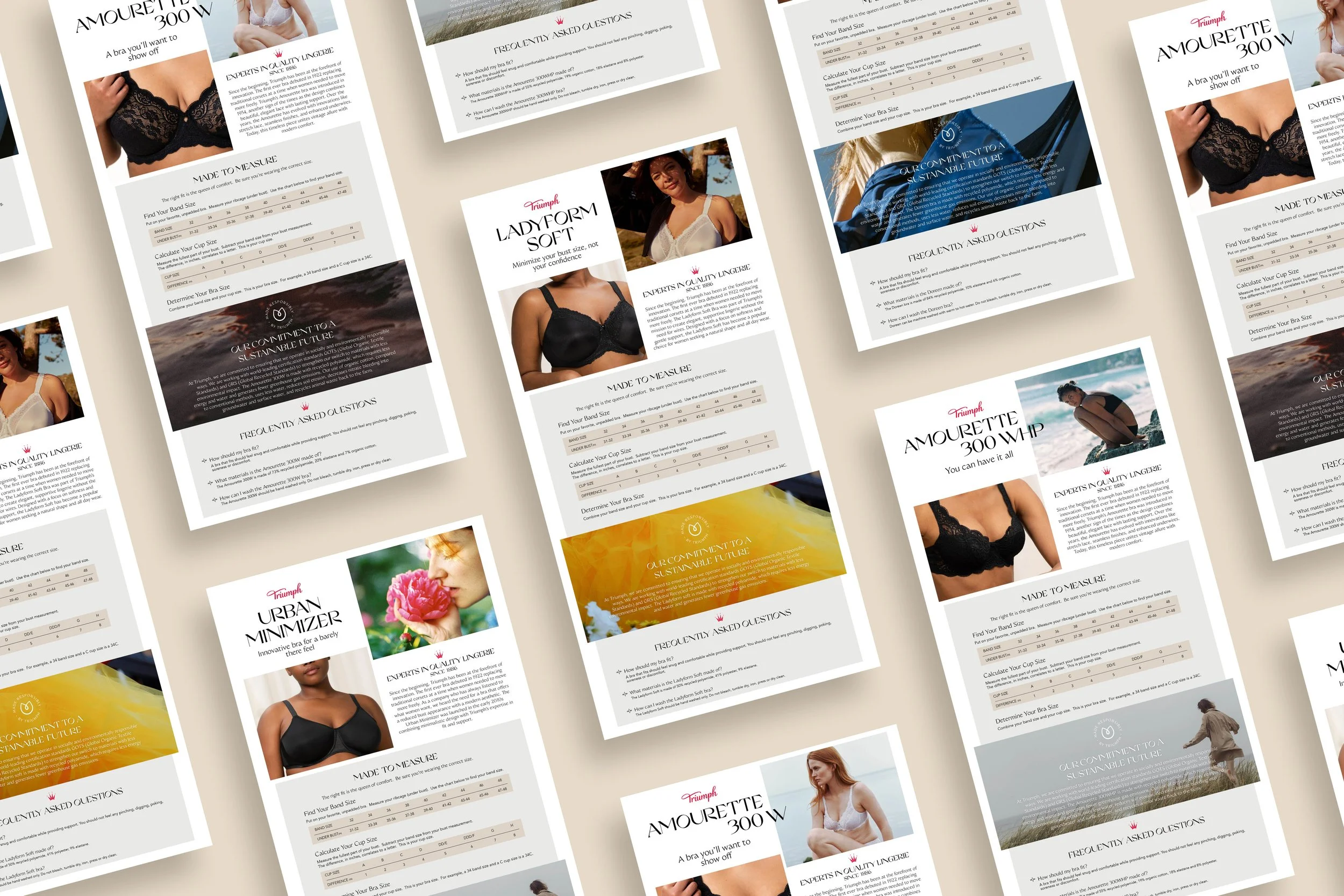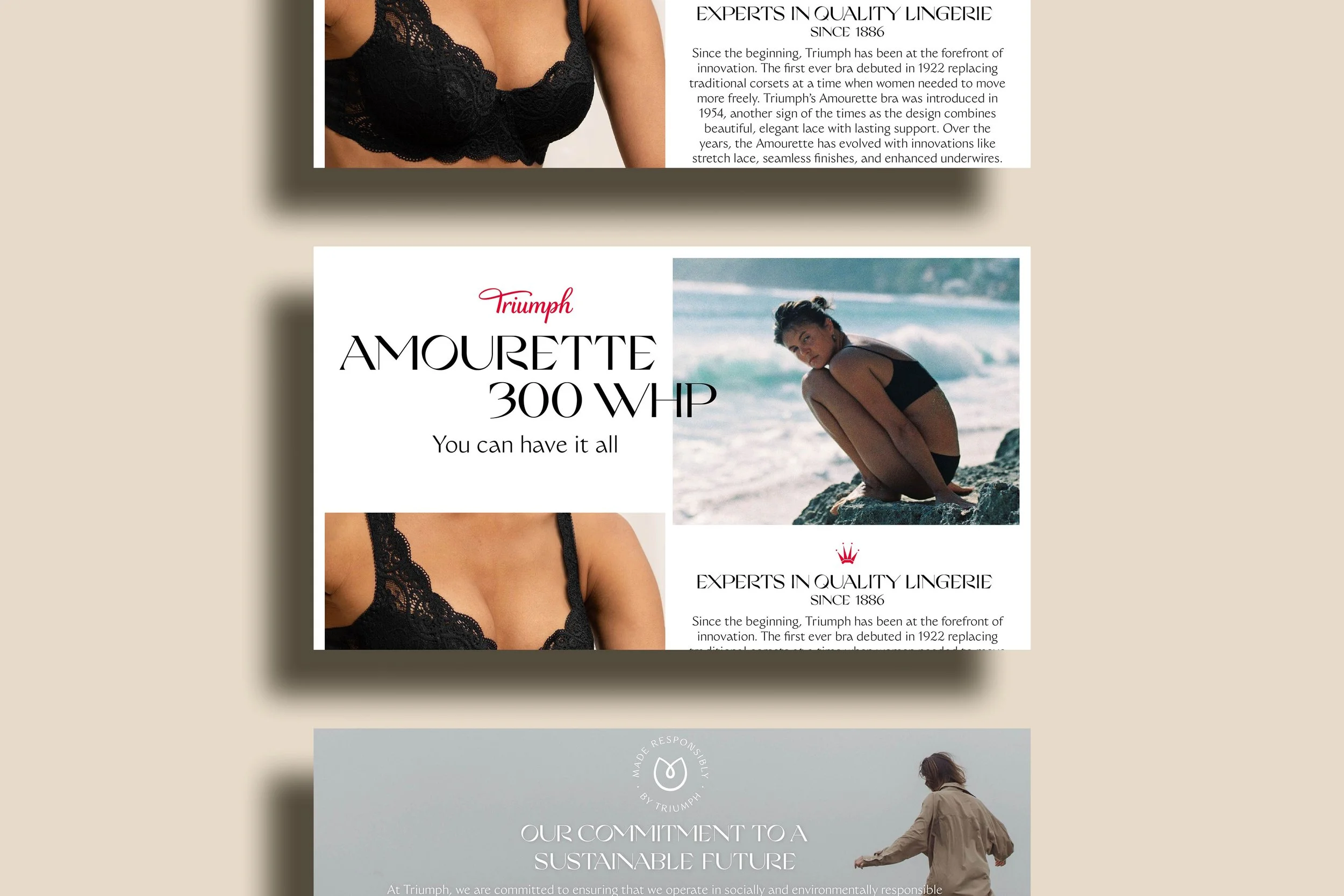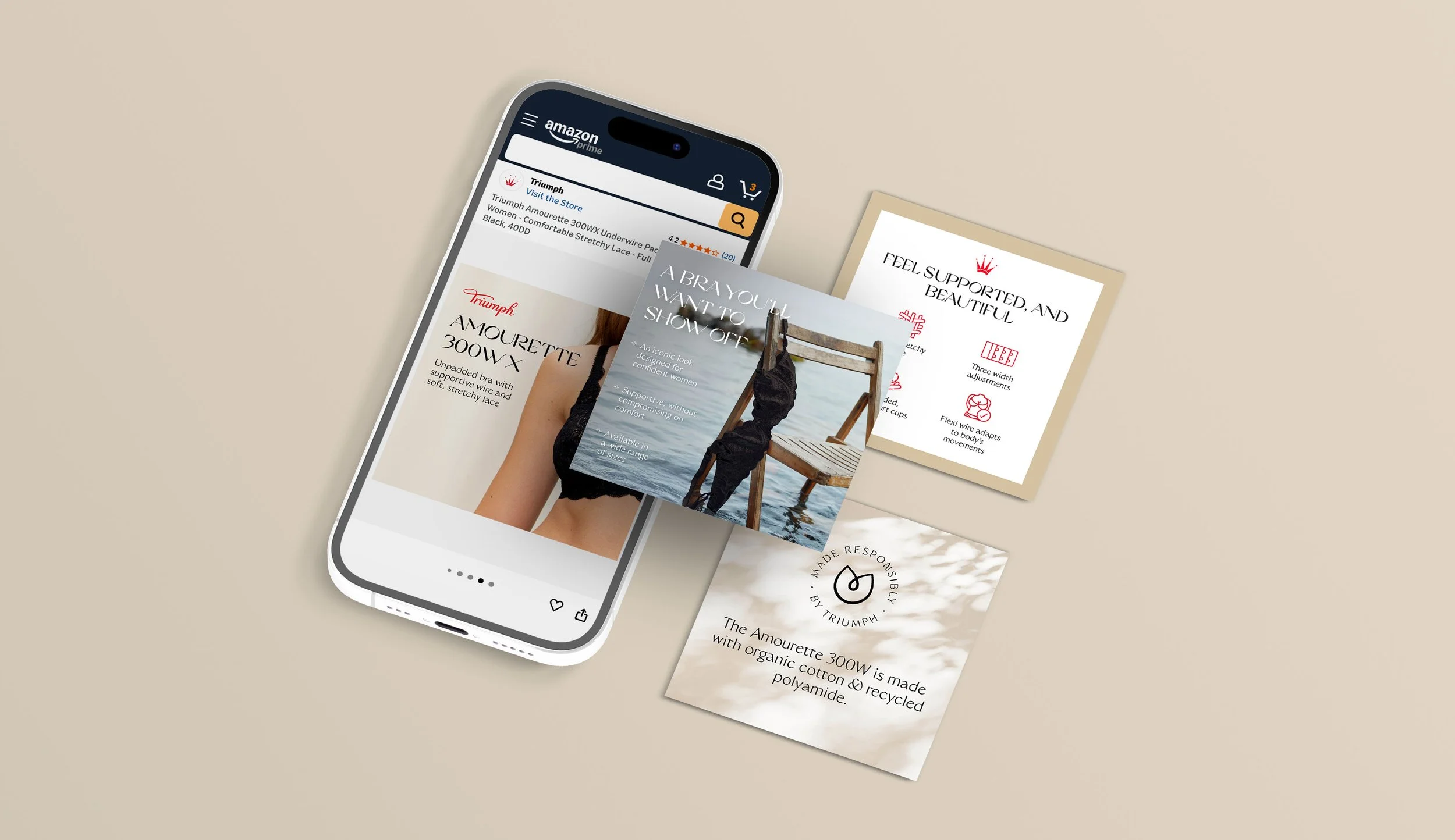 Triumph came in with a strong visual foundation, an established identity, and a devoted following across European markets. The main goal was to bridge the gap between their overseas success and the American customer base on Amazon. This project focused on building digital assets and a marketing strategy designed to compete with top American intimate brands and build real momentum online.