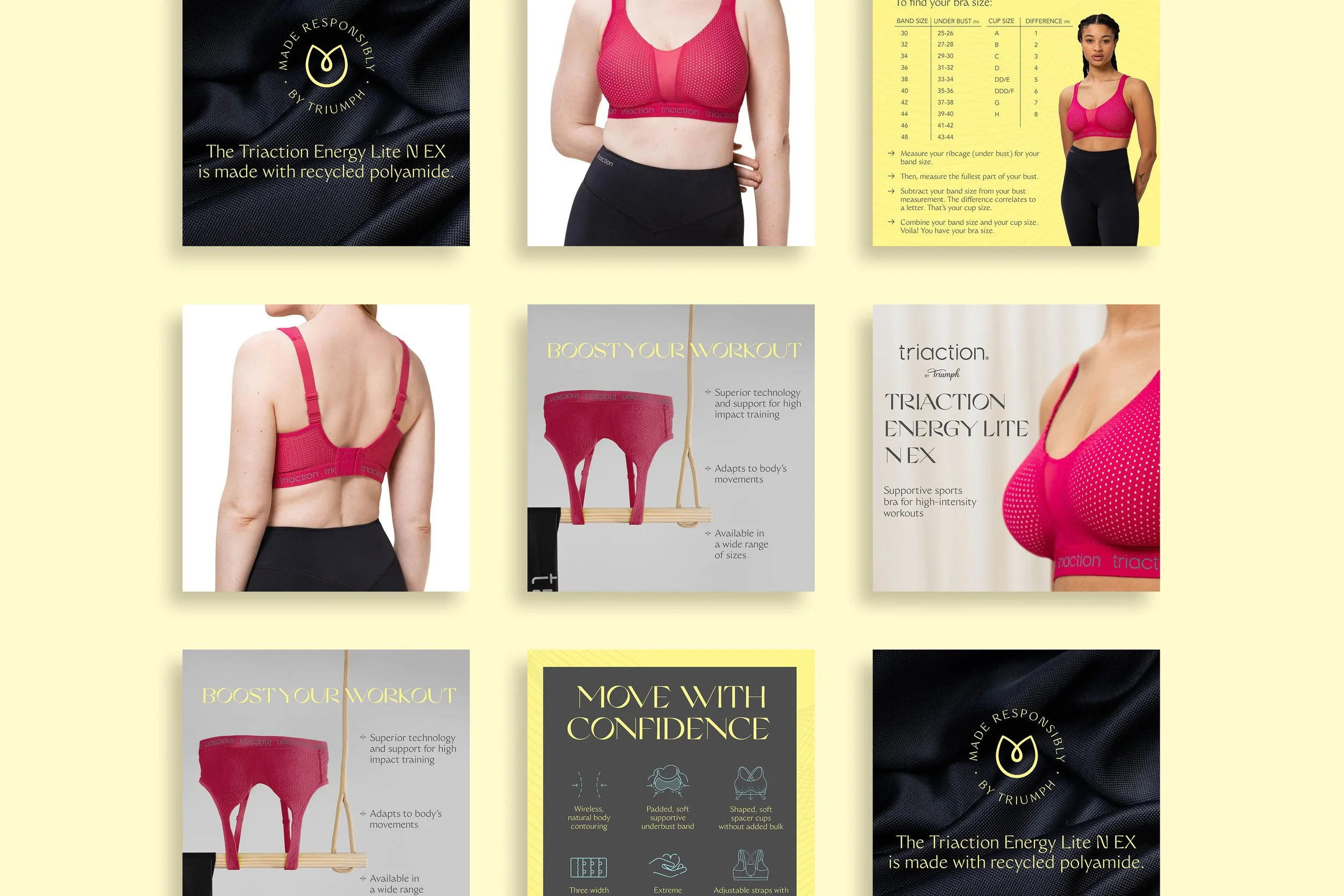 Triumph's sport collection doesn't just meet the demands of high-impact training, it's designed to exceed them. Every visual, every asset, every touchpoint communicates a product built for women who push limits.